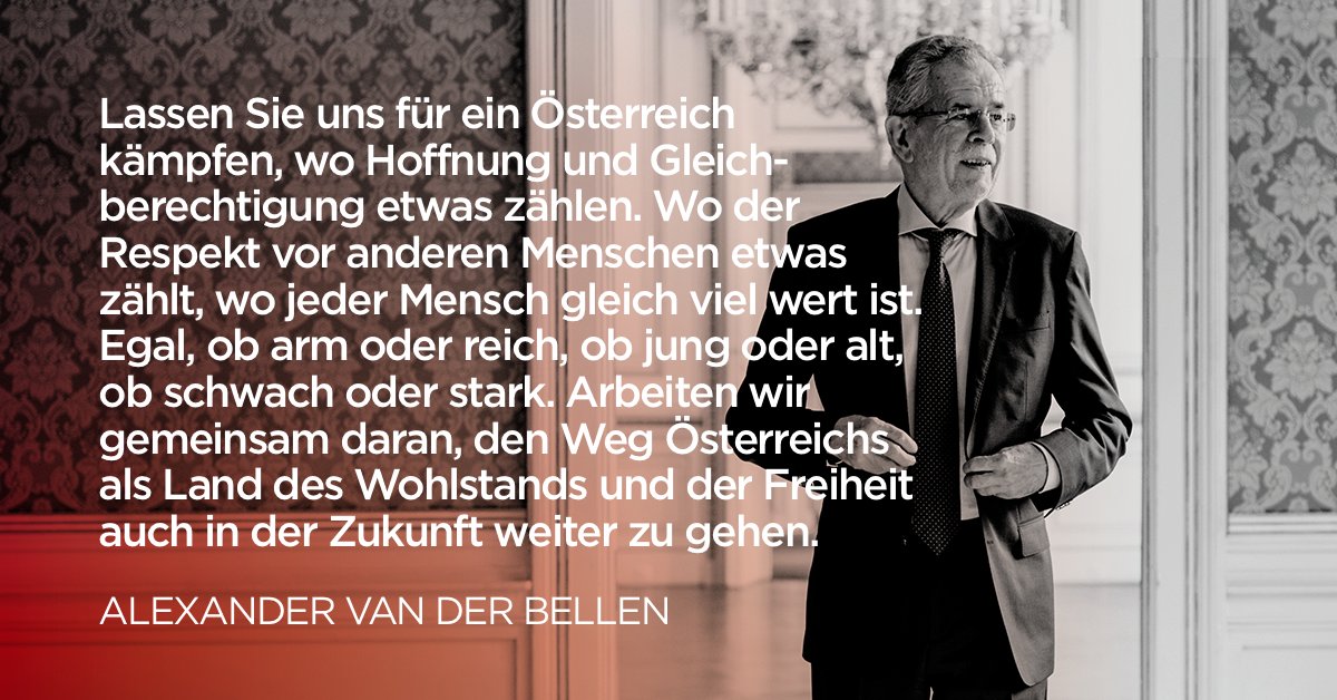 Schlappe für die traditionellen parteien. Wichtig für den bundespräsidenten ist es, den jungen leuten zuzuhören. Jänner 1944 in wien), inoffiziell oft mit dem vornamen sascha oder der abkürzung vdb bezeichnet, ist ein österreichischer wirtschaftswissenschaftler, politiker (parteilos, bis 2016 die grünen) und seit dem 26. Die werbeagentur jung von matt/donau bekam am donnerstag eine auszeichnung straßenkundgebungen von van der bellen sind keine bekannt, insbesondere auch keine schlußkundgebung zur bundespräsidentenwahl 2016. Offizieller account des österreichischen bundespräsidenten alexander van der bellen.